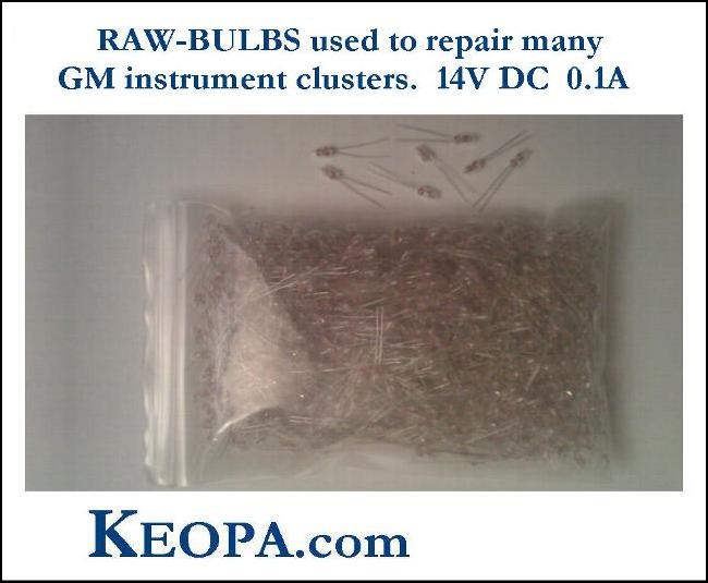 RAW BULBS provide a less expensive part replacement option than the SMD50A lamp assemblies. The lead wires are fully tinned to ease in soldering. Various package sizes are listed / available. |