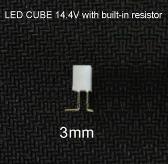5mm & 3mm LED Cubes are available in BLUE & WHITE Our LED cubes are designed and produced with “wide-dispersion” to provide even light without “hot spots”. Both 5mm and 3mm sizes have the same technical specifications, other than physical size. The built-as 14.4 volt also eliminates “flicker” and allows trouble-free use of the vehicle illumination-dimming switch.